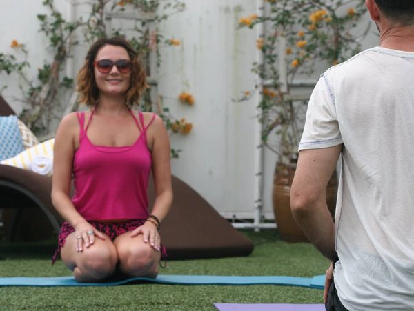 Her sessions are highly customized, blending yoga therapy, Pilates principles, somatic stretching, and nervous system regulation to help golfers feel better both on and off the course.